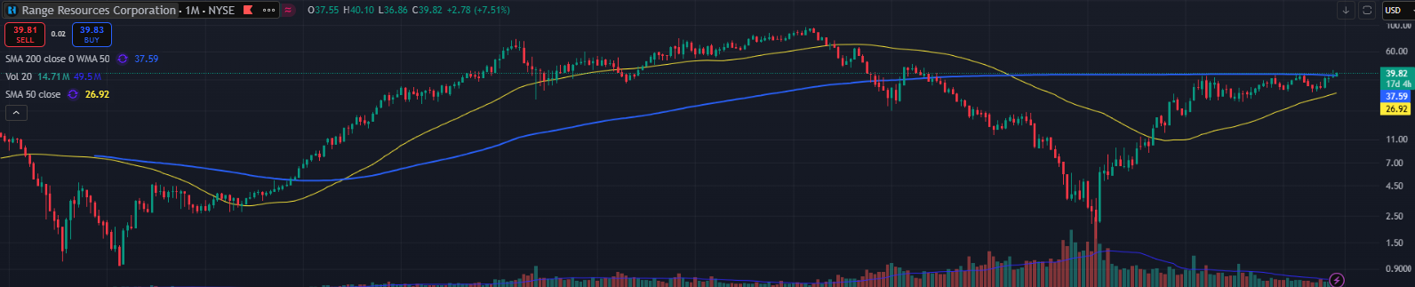 Tradingview: Range Ressouces (Ticker: RRC) from 1998 to 02/25
